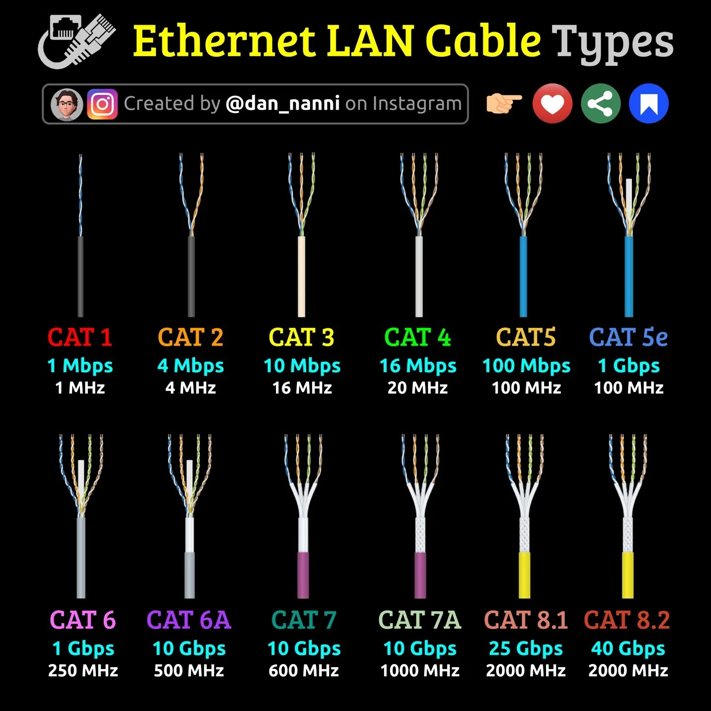 | Cat. 5 | 100Mbps | FastEthernet. 현재 가장 보편적으로 쓰임 |
