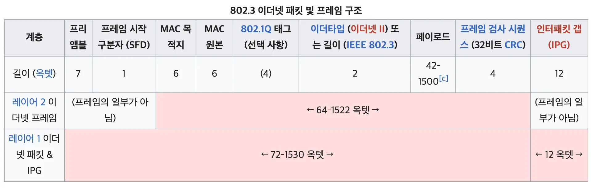 프리앰블 : 0과 1을 번갈아서 반복하는 바이트. 송수신간의 속도 동기화가 목적