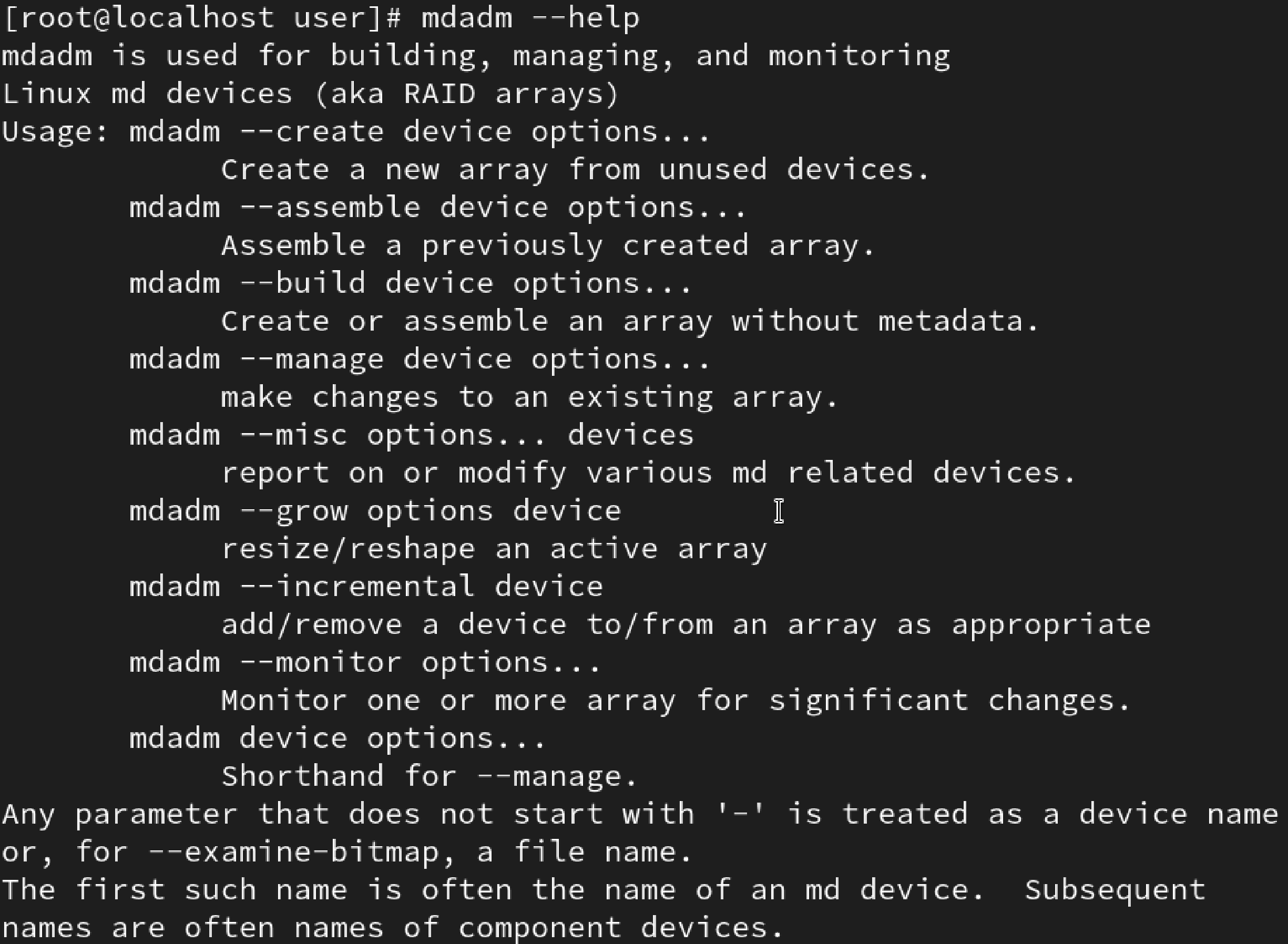 mdadm --help