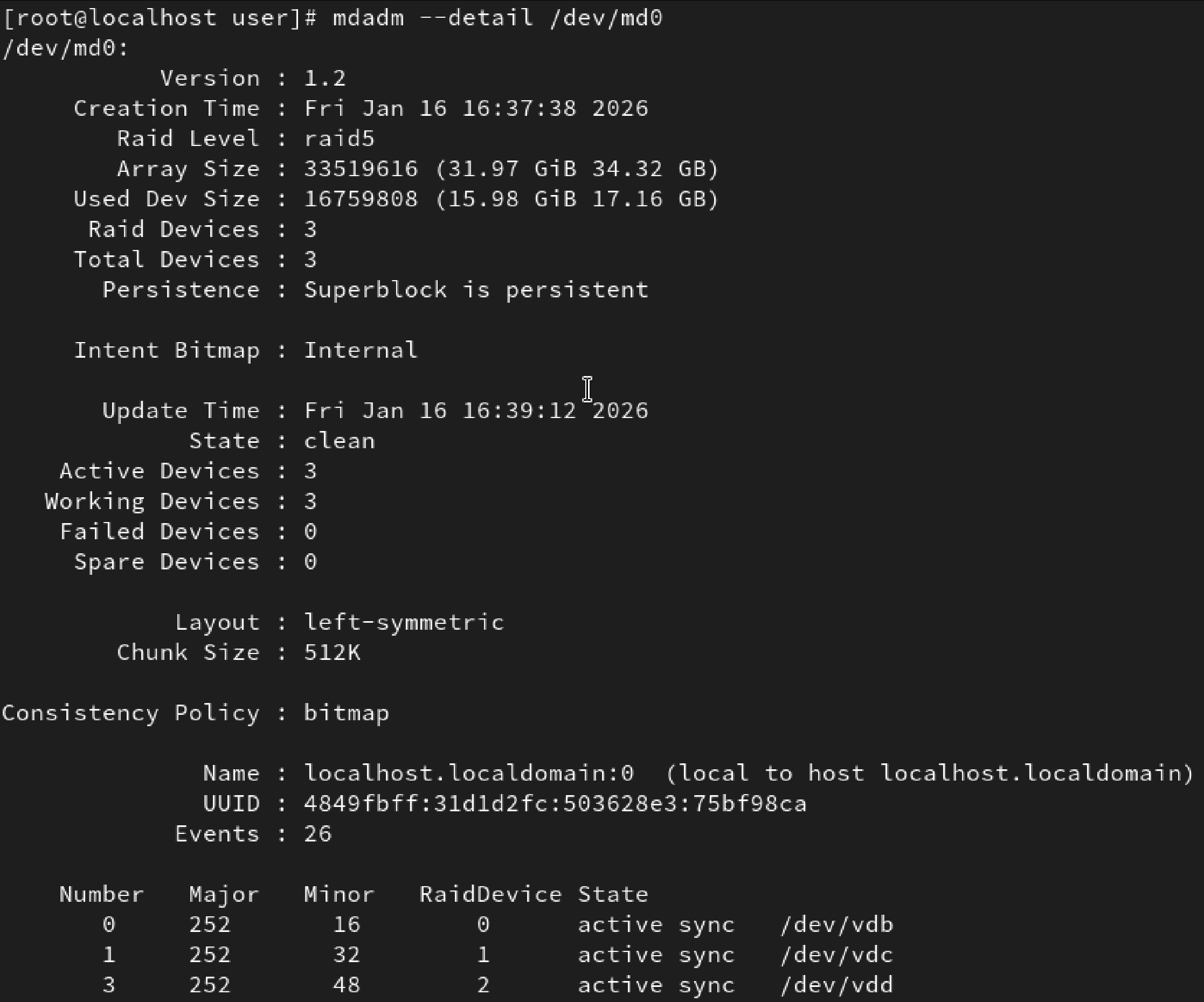 mdadm --detail /dev/md0출력 예시