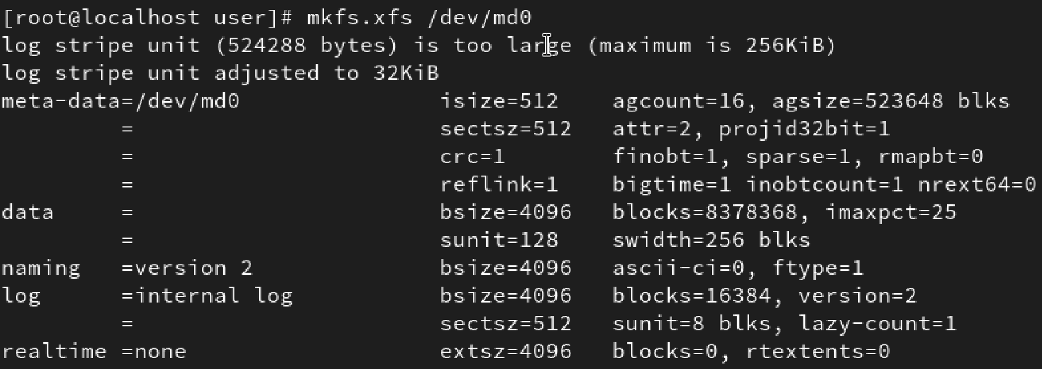 mkfs.xfs /dev/md0