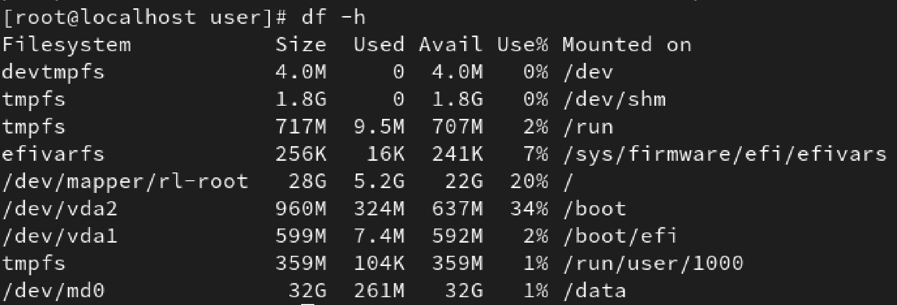 - df -h 출력 예시