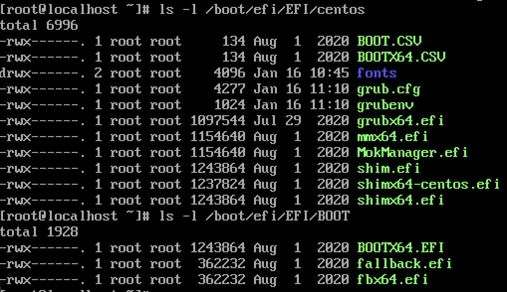 • 여기 보면 .efi 로 끝나는 파일들이 있음. 이 파일들을 사용해서 시스템을 부팅하는 것.