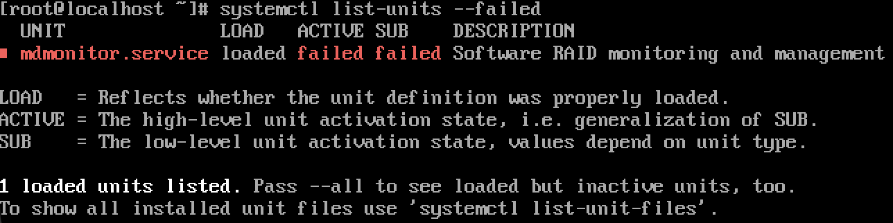 • 부팅 이후에 어떤 유닛이 켜지지 못했는지 확인하는 명령어
