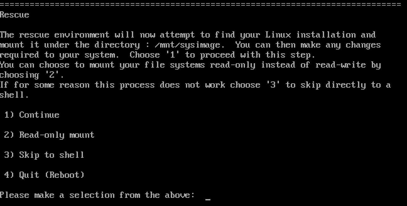 - 복구 환경이 이제 리눅스가 설치되어있는 부분을 찾아다가 /mnt/sysimage 밑에 마운트할거고, 거기서 필요한걸 바꿀 수 있음.