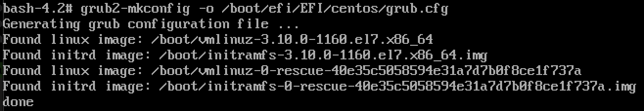 grub2-mkconfig -o /boot/efi/EFI/centos/grub.cfg