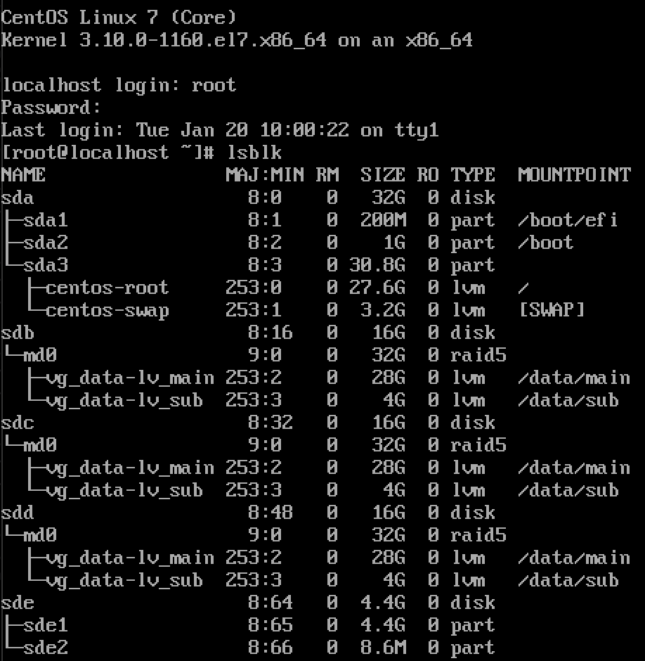 - LVM 기반 루트 구성인것을 /dev/mapper/ 를 보고 알 수 있음