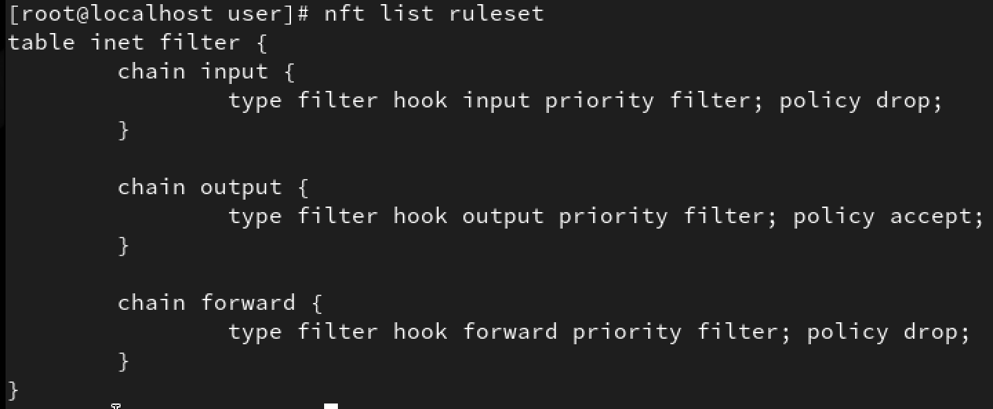 - 참고 : nftables는 기본적으로 아무 정책도 없음