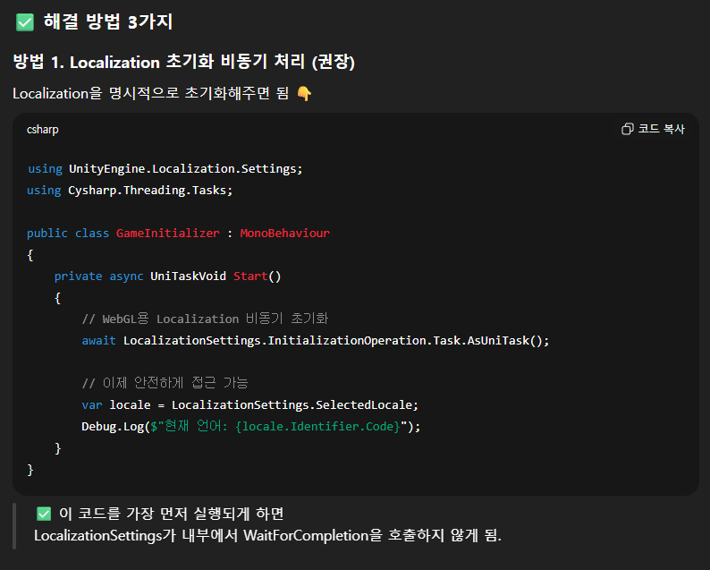 - 그래서 시작할 때 Localization 초기화를 비동기로 await 해서 직접 함